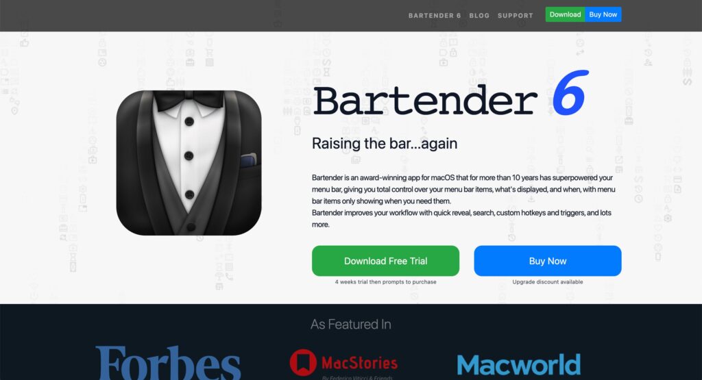 Bartenderは散らかりがちなmacOSのメニューバーをキレイに整理・管理してくれるアプリです。