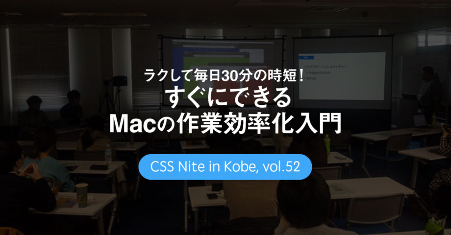 先日開催されたCSS Nite in Kobe vol.52「ラクして毎日30分の時短! すぐにできるMacの作業効率化入門」に登壇してきました。
