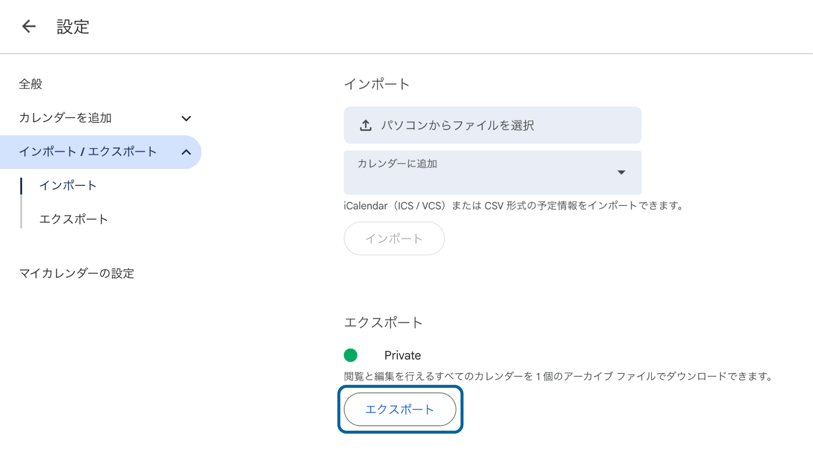 - Googleカレンダーをエクスポート