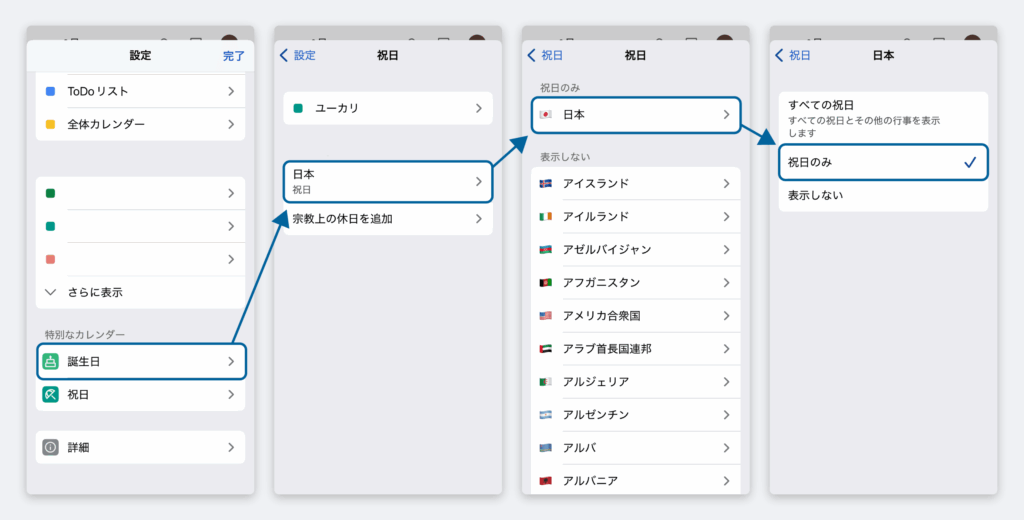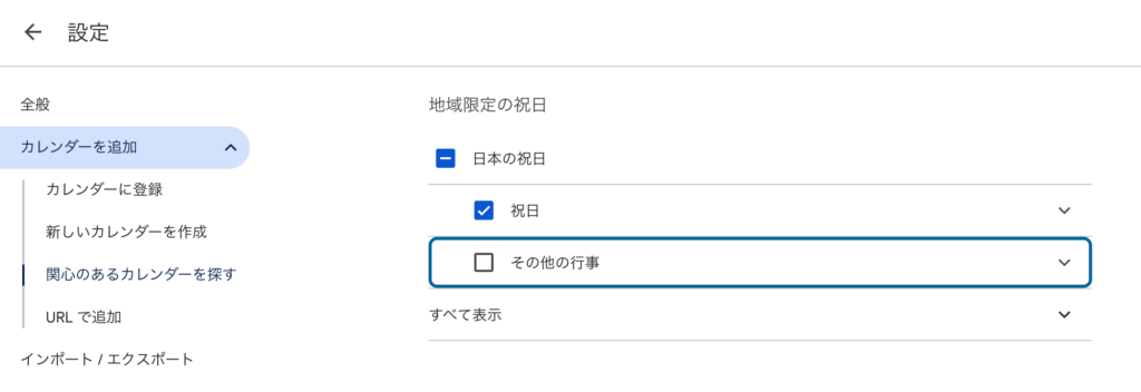 - 「日本の祝日」から祝日以外を非表示にする