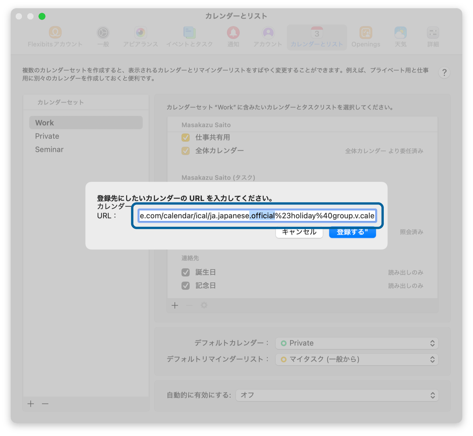 Fantasticalの場合は、iCal形式のURLを直接登録できます。