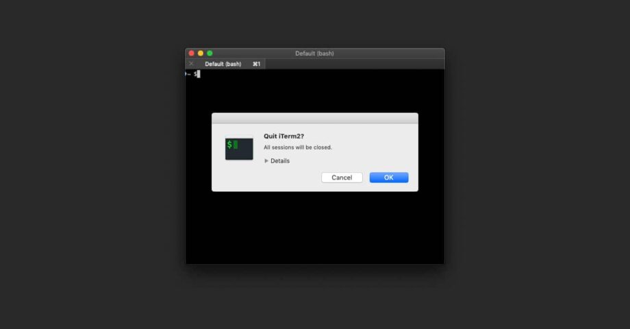 デフォルト設定のiTerm2だと、command + Qでアプリを終了しようとすると「本当にアプリを終了してよろしいですか?」という内容の確認ダイアログが毎回出てきます。