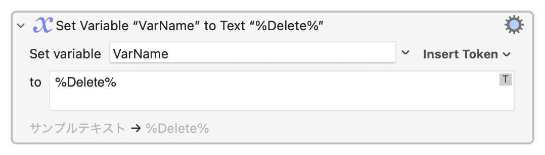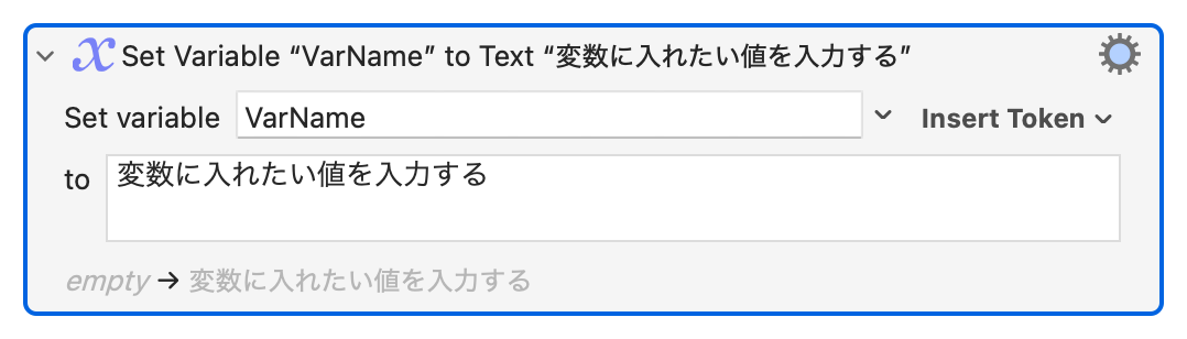 変数の値を使うときには、「%Variable%変数名%」というトークンを使う場合と、変数名だけ入力する場合の2パターンがあります。