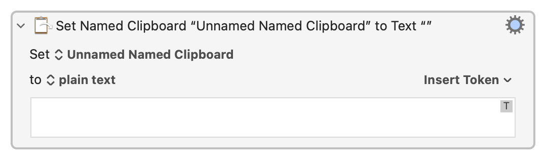 「Set Clipboard to 〇〇」系のアクションで「System Clipboard」以外を選択すると使えます。システムクリップボードを使ってもいいですが、システムクリップボードだと普通にコピーしたときにどんどん上書きされていくので、それとは別で残しておきたいならNamed Clipboardにしましょう。