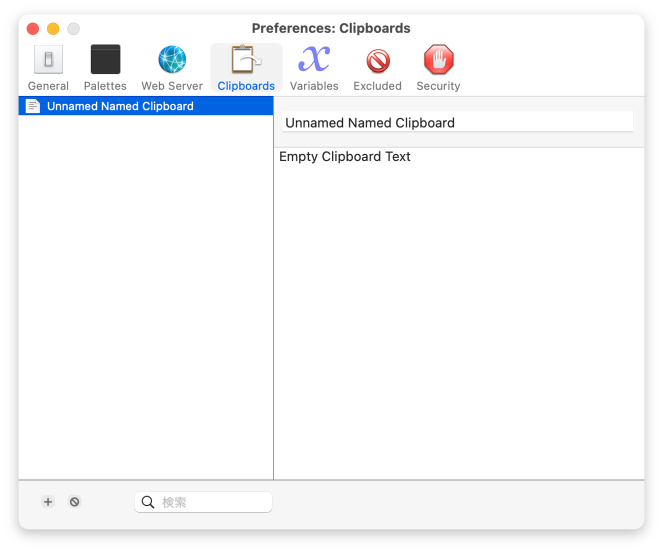 また、Named Clipboardは[環境設定]の[Clipboards]タブで作成・管理もできます。