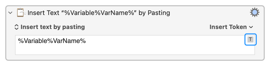 トークンを入力する必要があるアクションの場合、右上に「Insert Token」が表示されるので、そこからトークンを選択して入力できます。