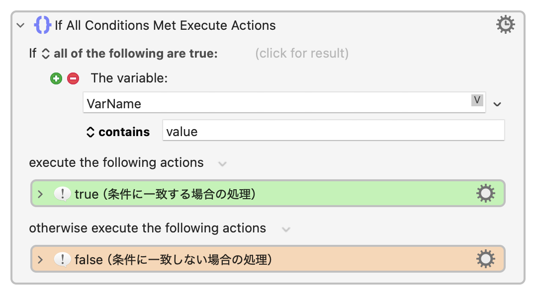 どのアクションも基本的には「変数名」と「値」を入力して、実行すると指定した変数名に値がセットされます。