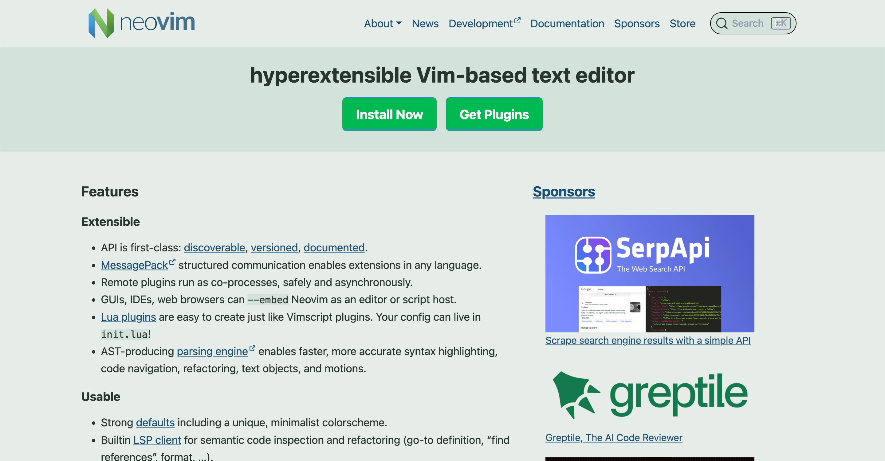 Vimプラグインの大半がそのまま使える上に、Neovimでしか使えないプラグインもあるため、Vimに比べるとプラグインが豊富です。