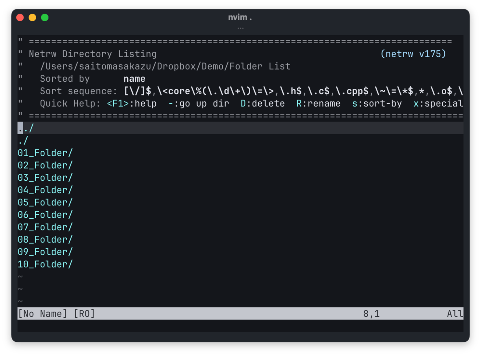 nvim .これで現在のディレクトリをNeovimで開けます。