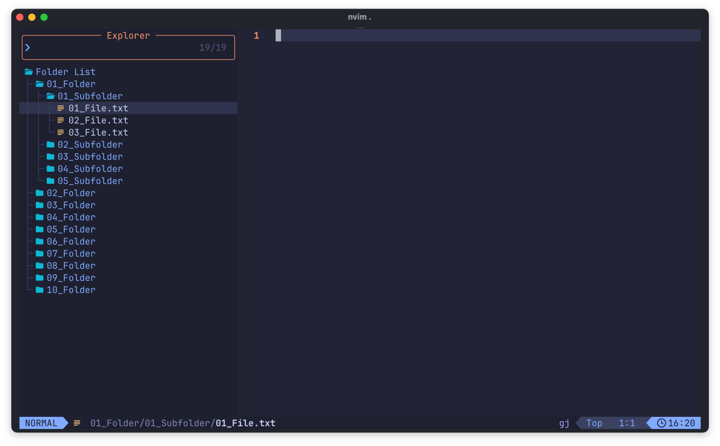 ちなみにサイドバー(ファイルエクスプローラー)は「space → e」で開閉できます。