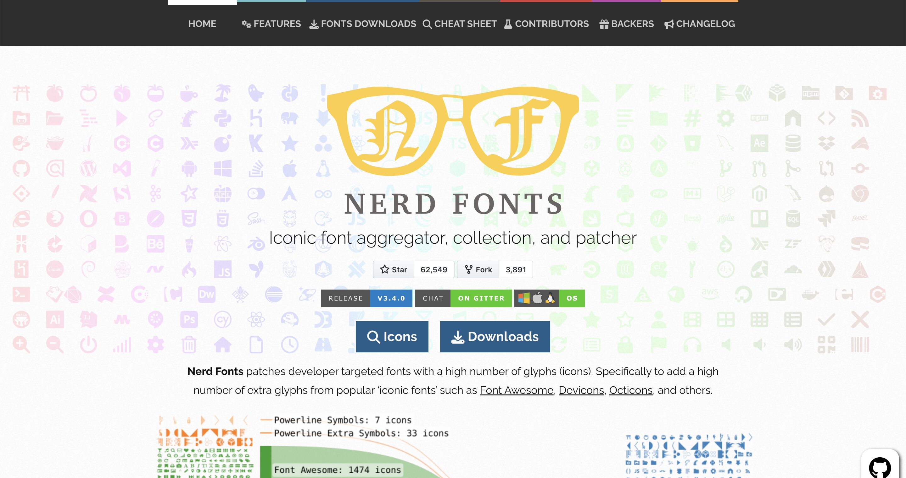 Nerd Fontとは開発者に特化したフォント集のことで、オープンソースの有名なプログラミング用フォントに、Font Awesome・Devicons・Material Icons・Octiconsなどのアイコンフォントを統合したものです。
