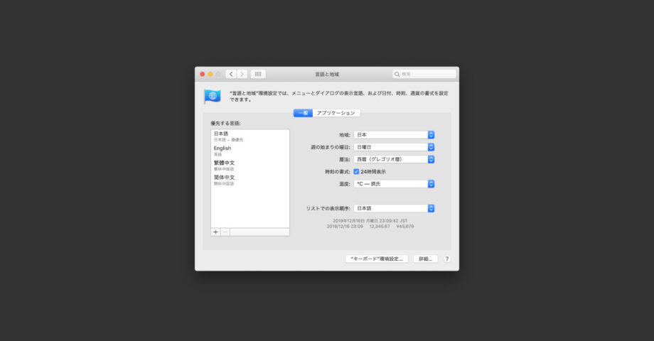 macOSのシステム環境設定「言語と地域」の設定見直し