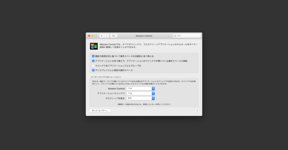 macOSのシステム環境設定「Mission Control」の設定見直し