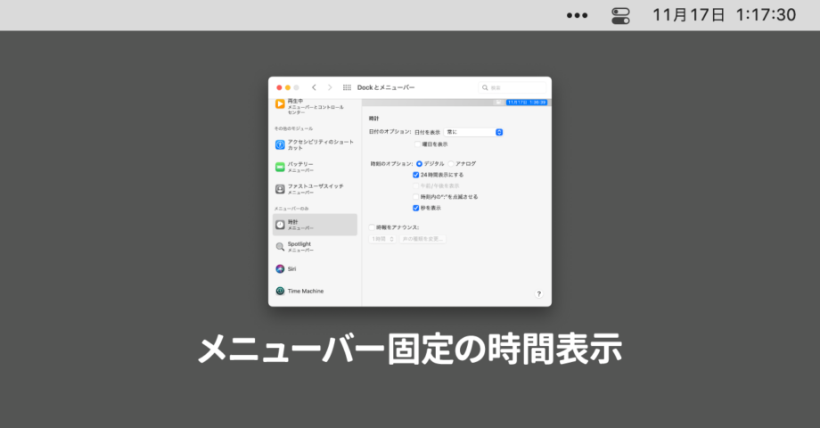 macOS 11 Big Sur以降メニューバー右上に固定表示されてしまう時計表示を目立たなくする