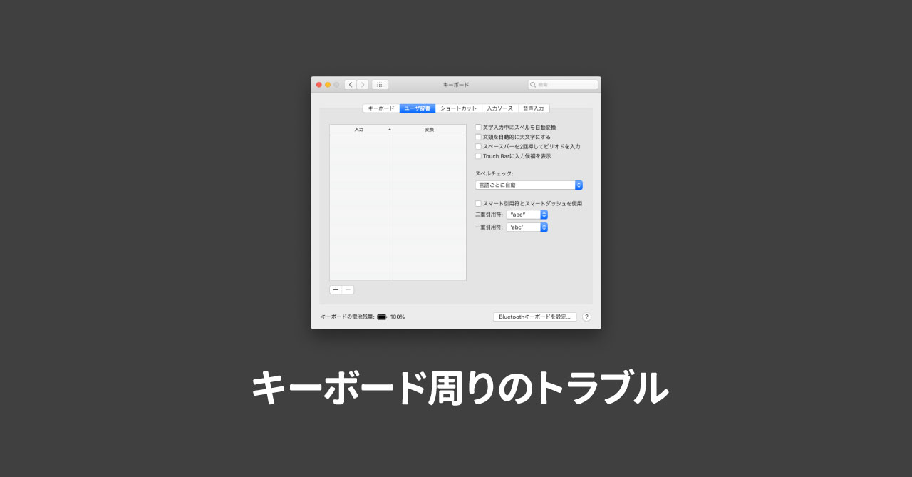 入力関連のトラブルを防ぐためにも、システム環境設定の[キーボード]→[ユーザ辞書]を確認しておく