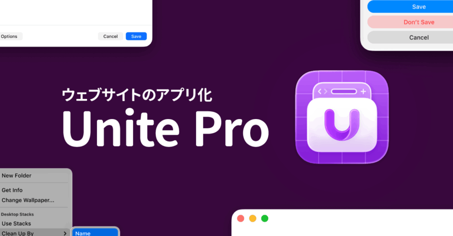 無料の「Dockに追加」で済むケースも多いですが、見た目のカスタマイズやメニューバー常駐など、細かい調整が欲しくなったときにUnite Proは選択肢に入ってきます。