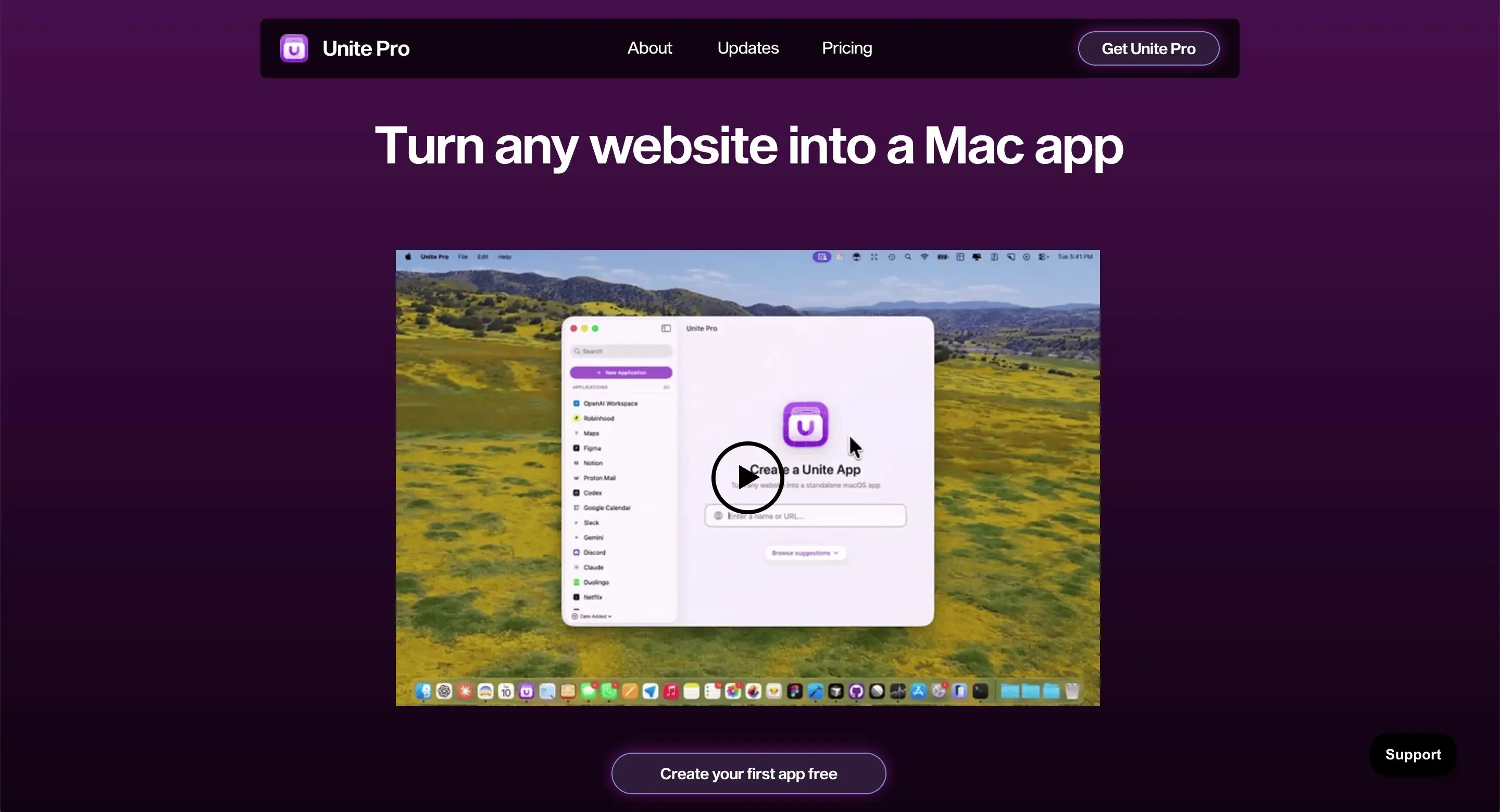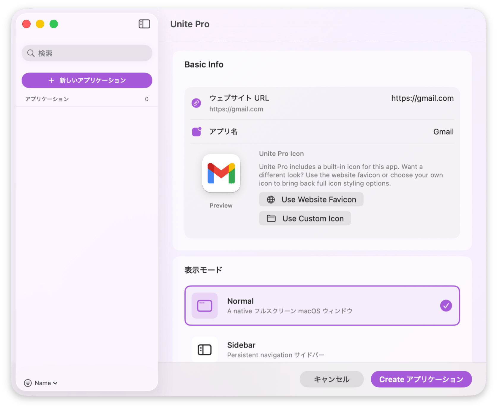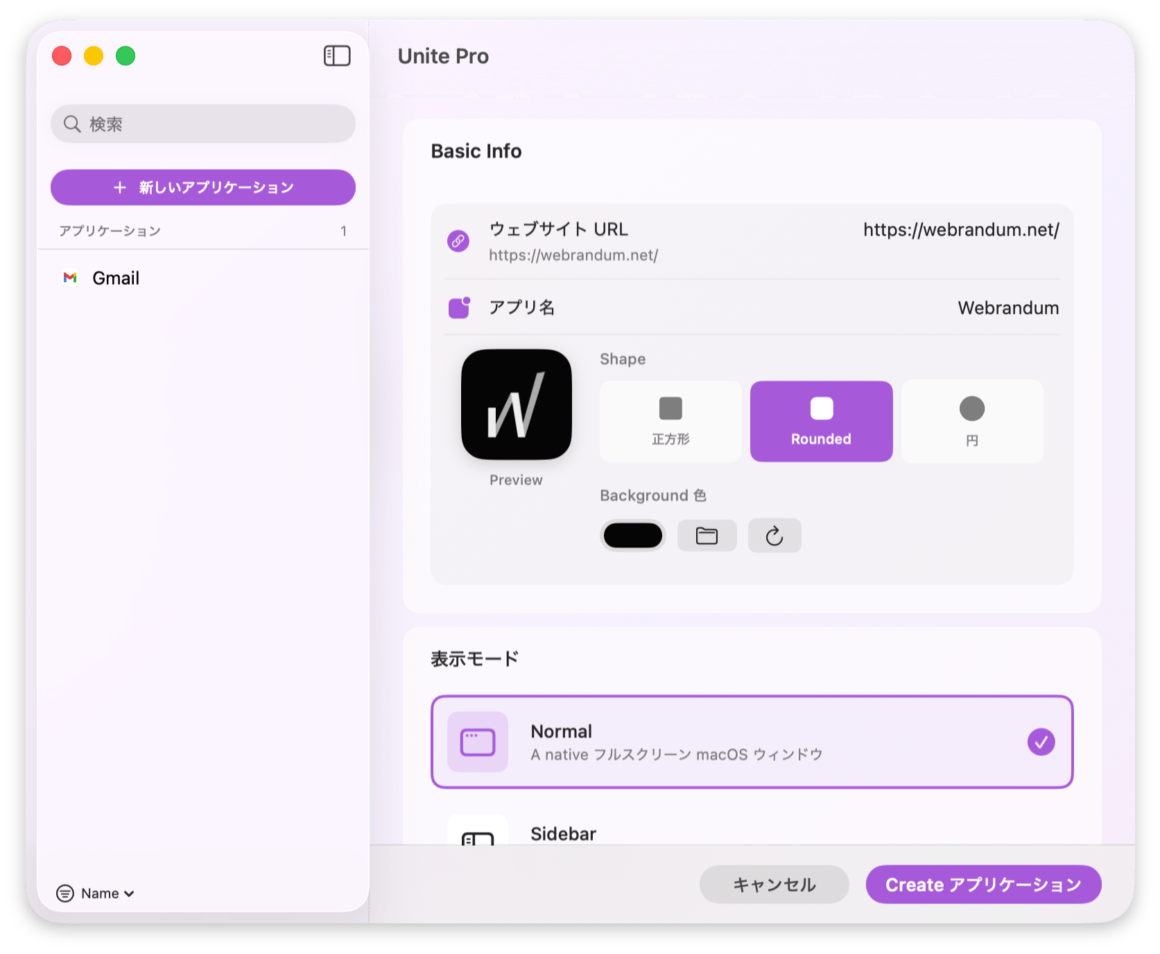 そういったウェブサービスを、独立したmacOSアプリとしてラッピングしてくれるのが「Unite Pro」です。