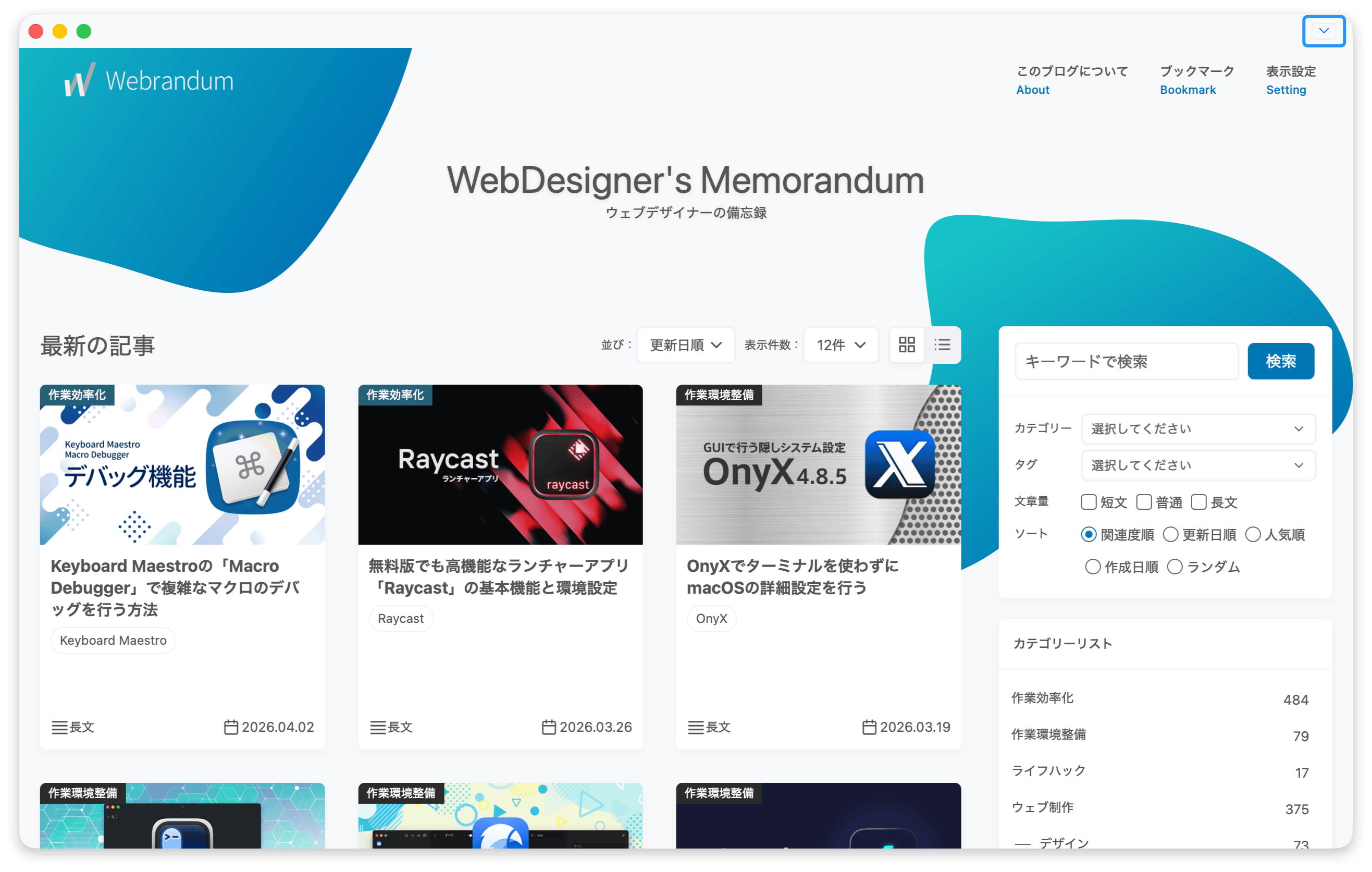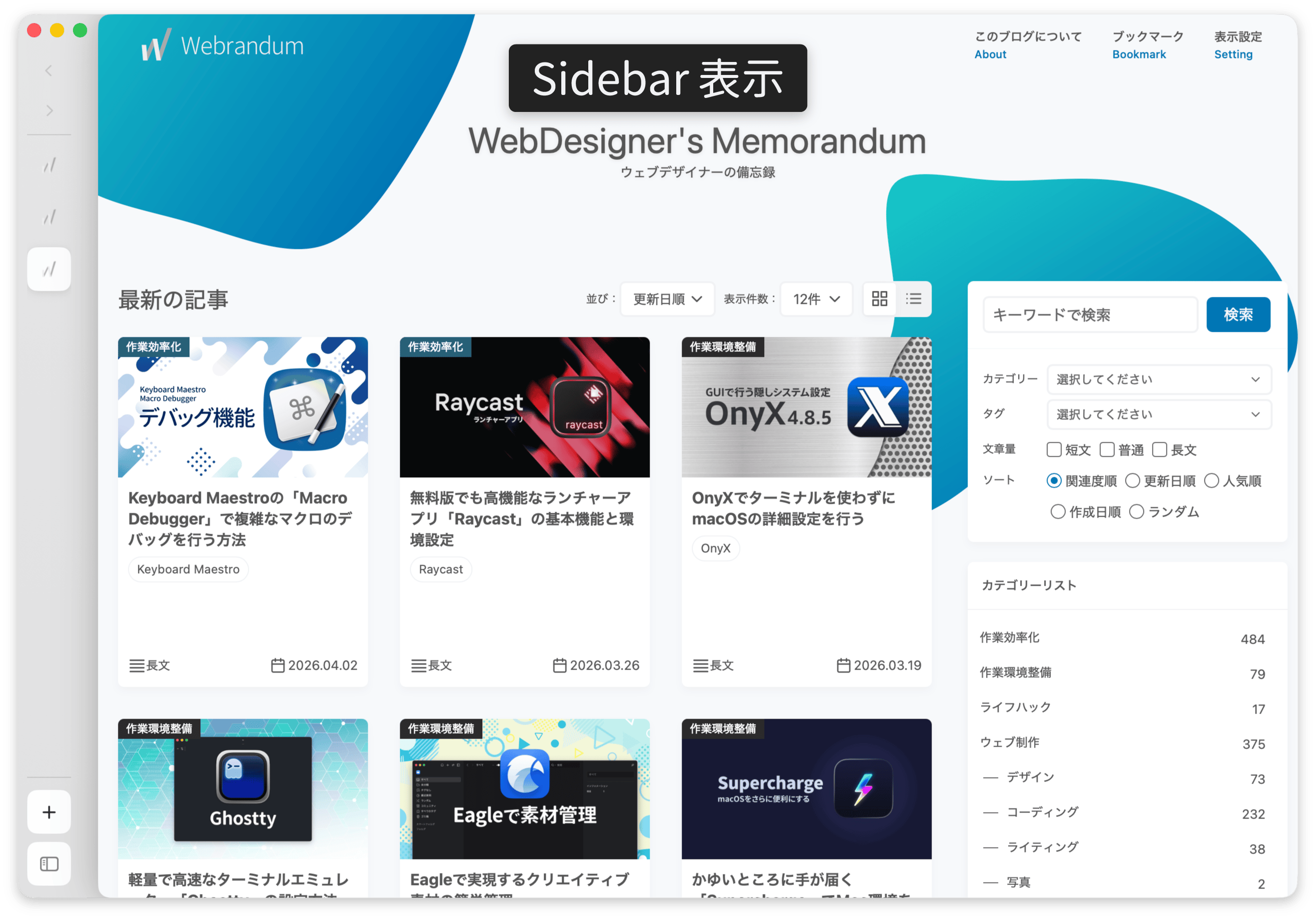 ここからは説明のために、当ブログ(Webrandum)をアプリ化して説明します。