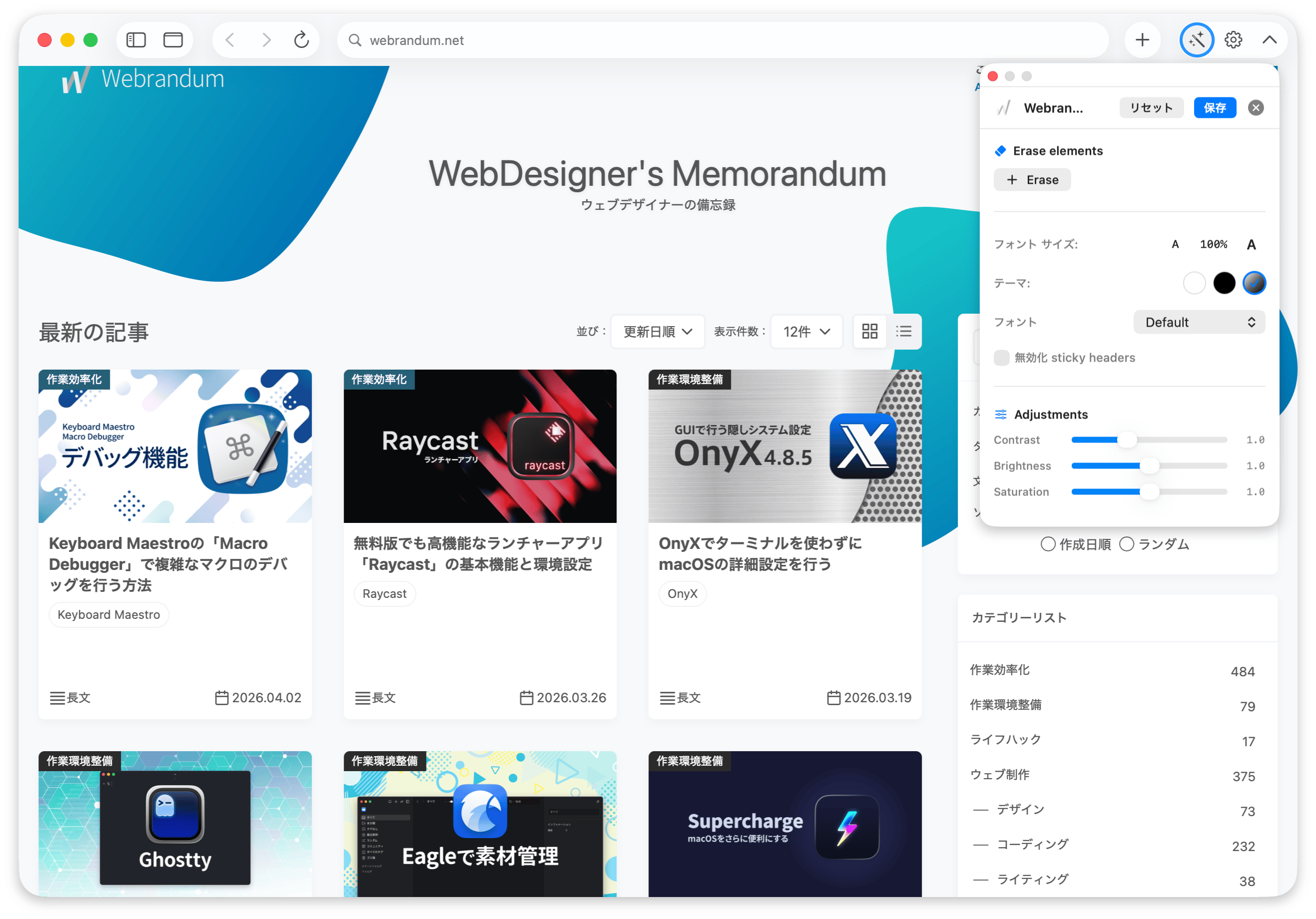 これはコーディングの知識がなくても、簡単にページの要素を削除したり、フォントや色を変更したり、固定ヘッダーを無効化したりできる機能です。