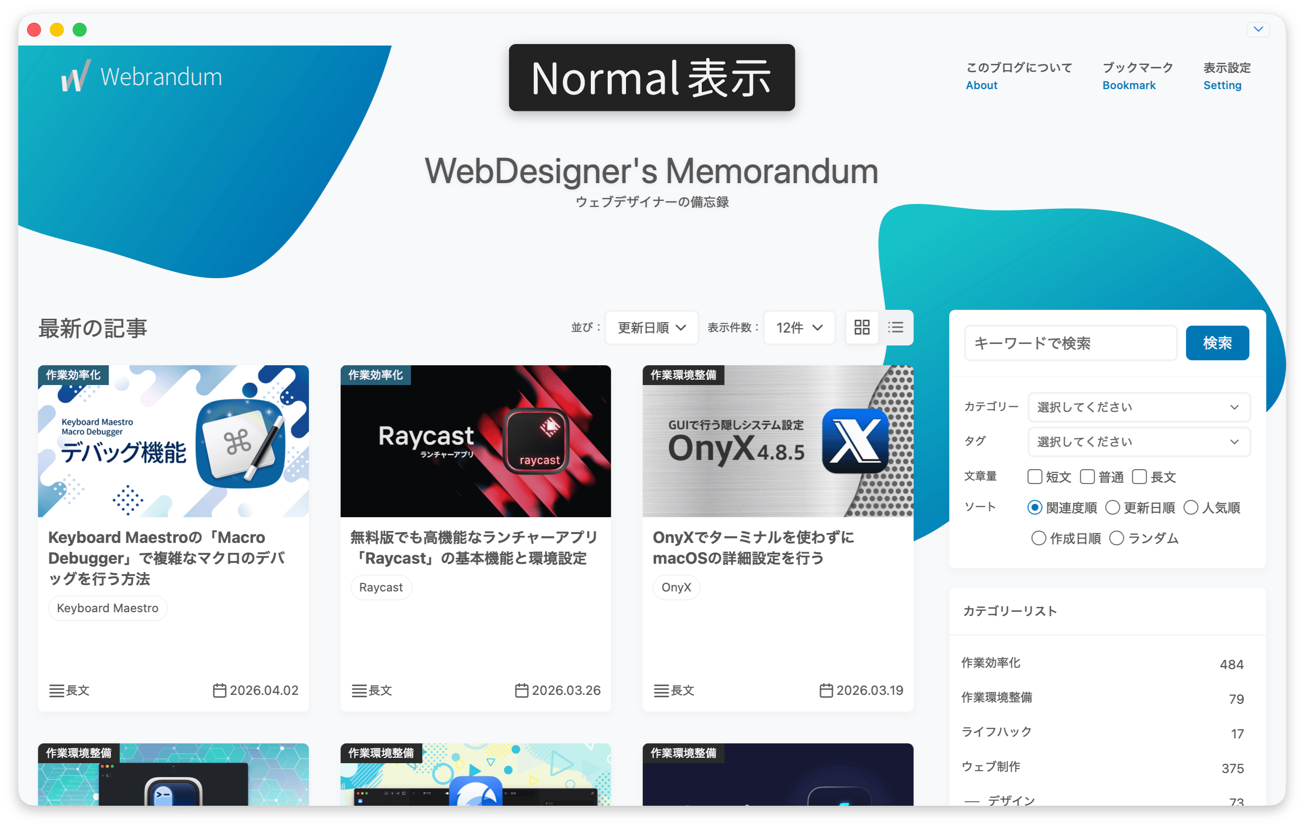 Normal表示は通常のウインドウにウェブサイトを表示します。