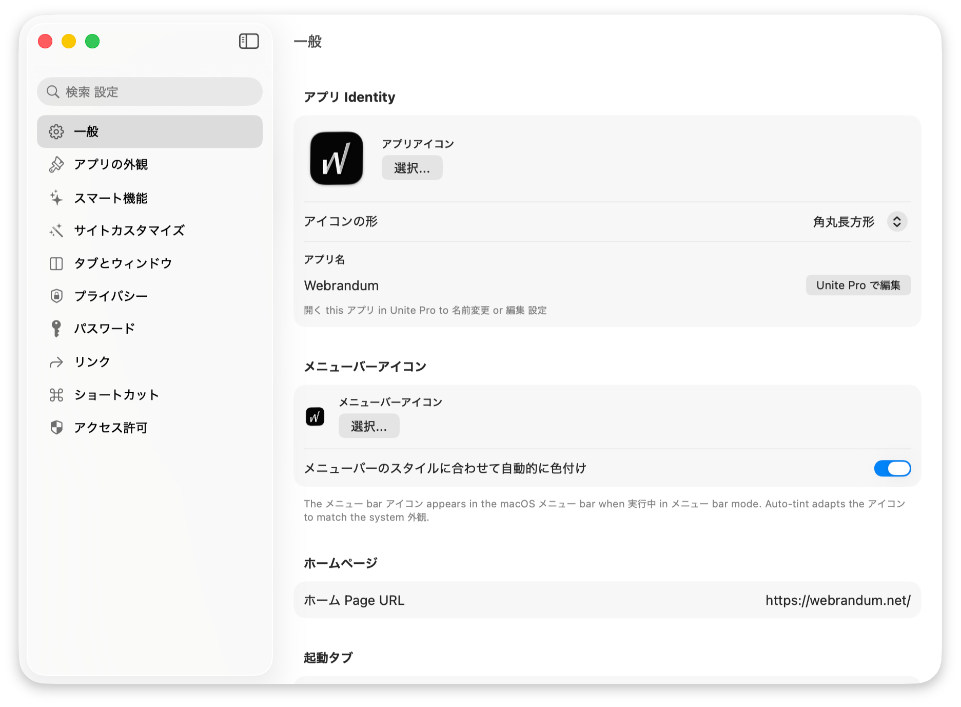 ウェブサイトをmacOSアプリとしてラッピングする「Unite Pro」