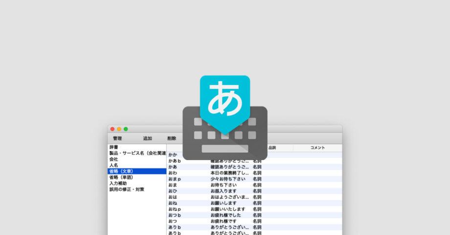 略語の最後に「p」を付けて変換すると丁寧な言葉に。「b」を付けると過去形になるようにしています。
