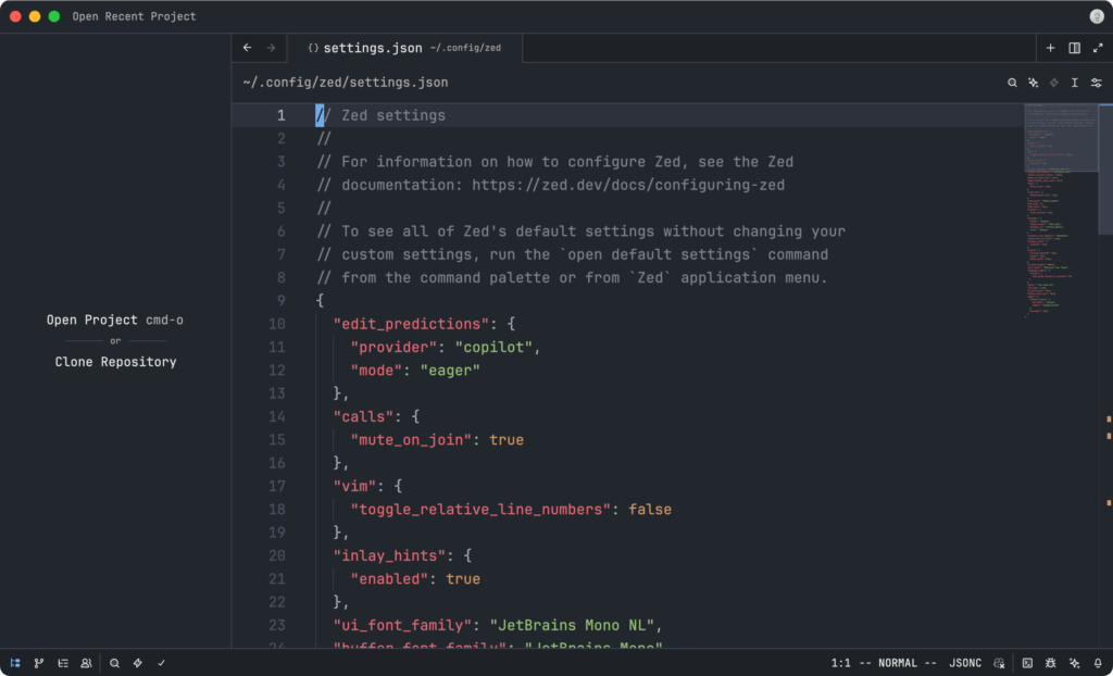 Zedの設定はVisual Studio Codeと似たような形で行えます。